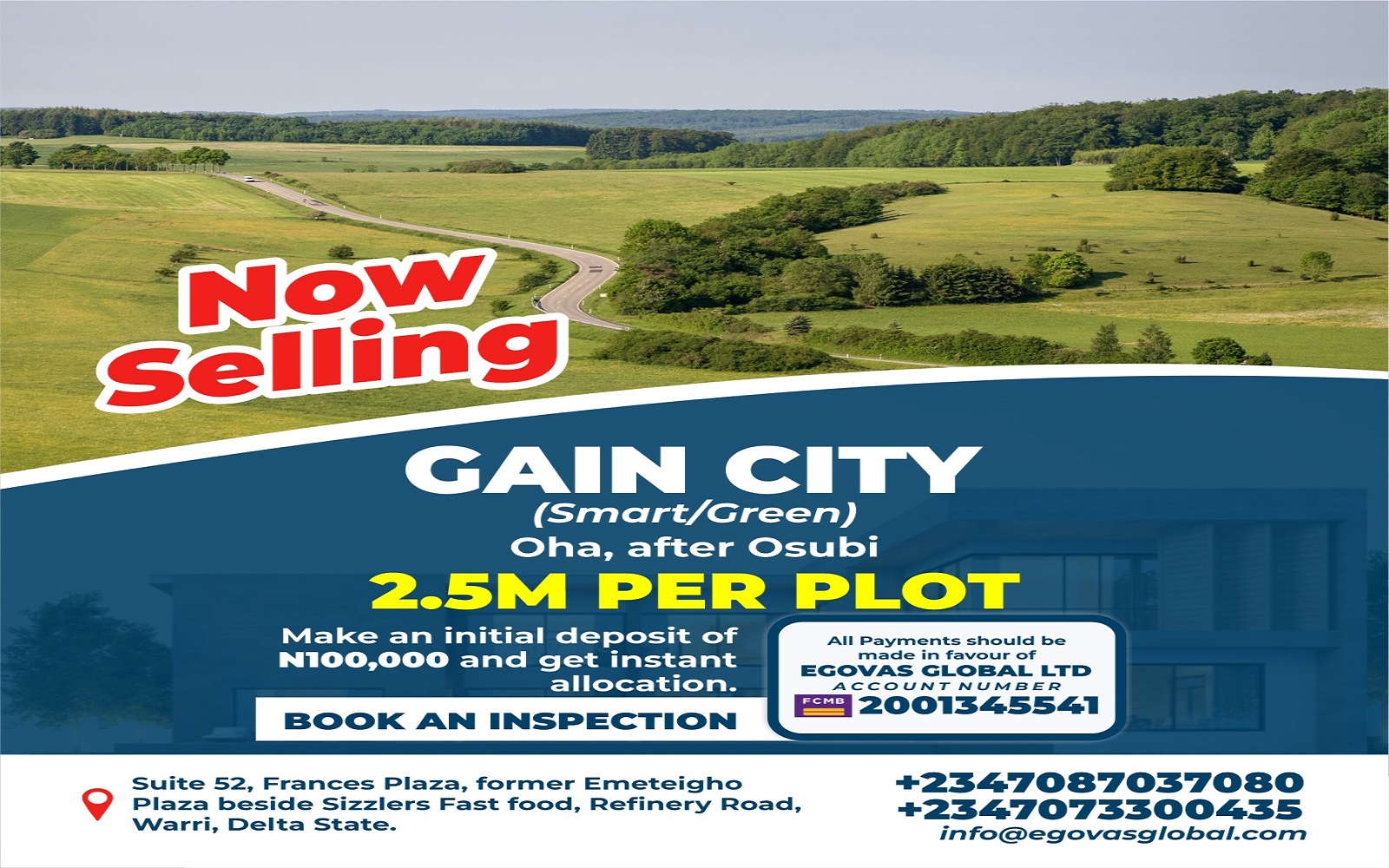 an exceptional estate land located in OHA after Osubi in Warri, Delta State.